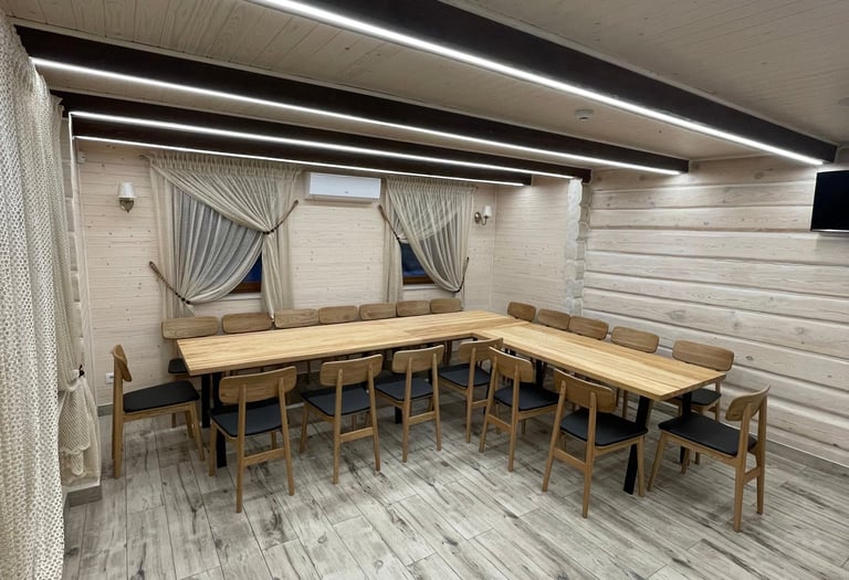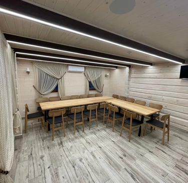 Erdvią ir šviesią salę su reguliuojamu LED-RGB apšvietimu, talpinančią iki 20 žmonių.
