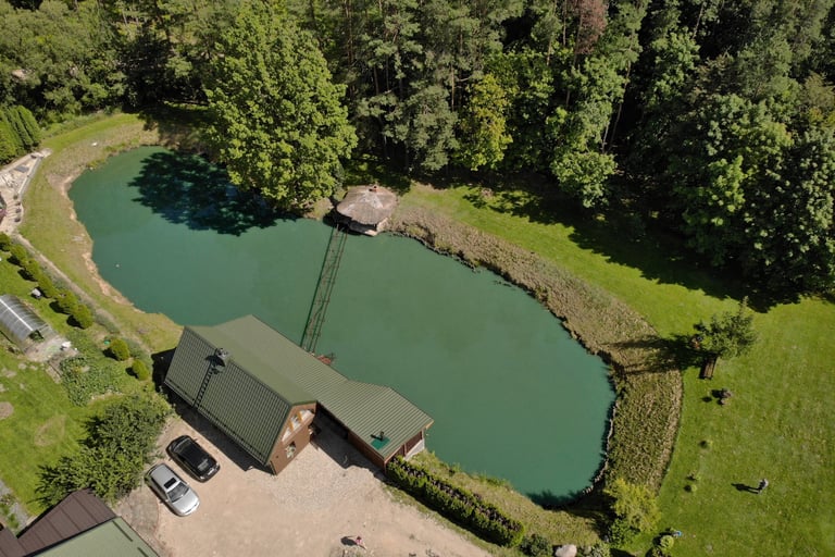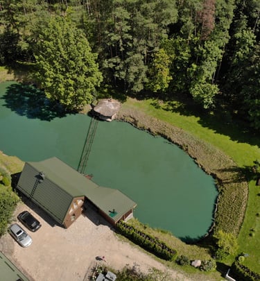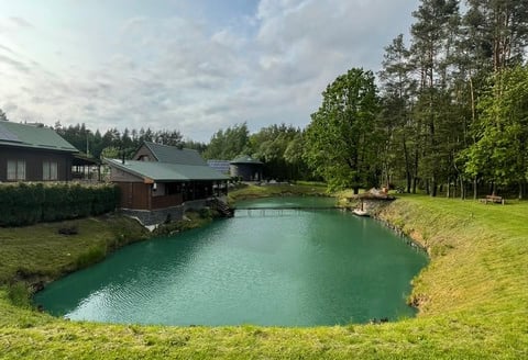 Tvenkinys kur galima žvejuoti bei pagauta laimiki pasigaminti mūsų sodyboje.